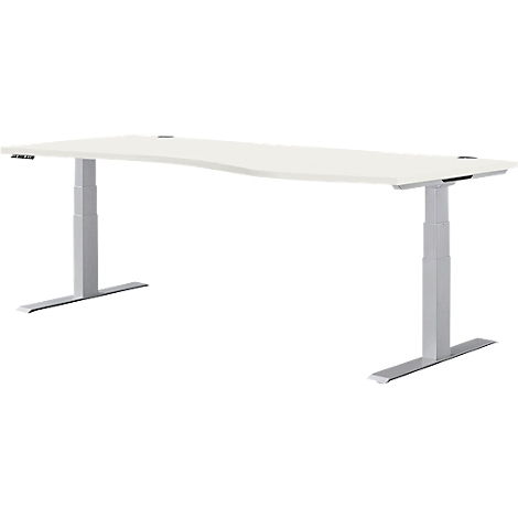 Schäfer Shop Genius Schreibtisch MODENA FLEX, elektrisch höhenverstellbar, Freiform, Ansatz links, B 1800 mm, lichtgrau/weißalu